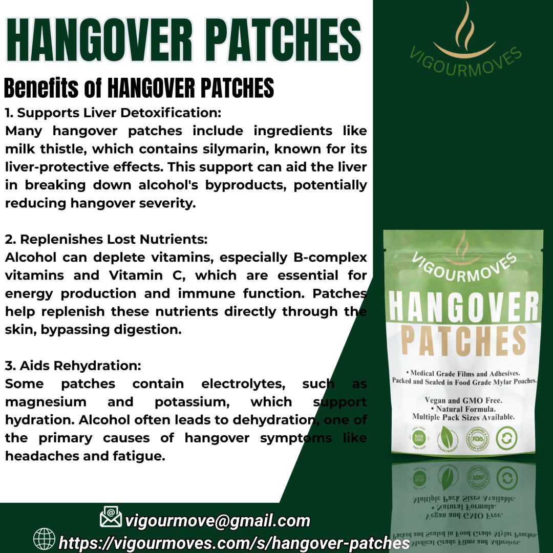 Detox Support: Many patches contain antioxidants and herbal extracts that help the liver process alcohol and reduce oxidative stress, which contributes to hangover symptoms.